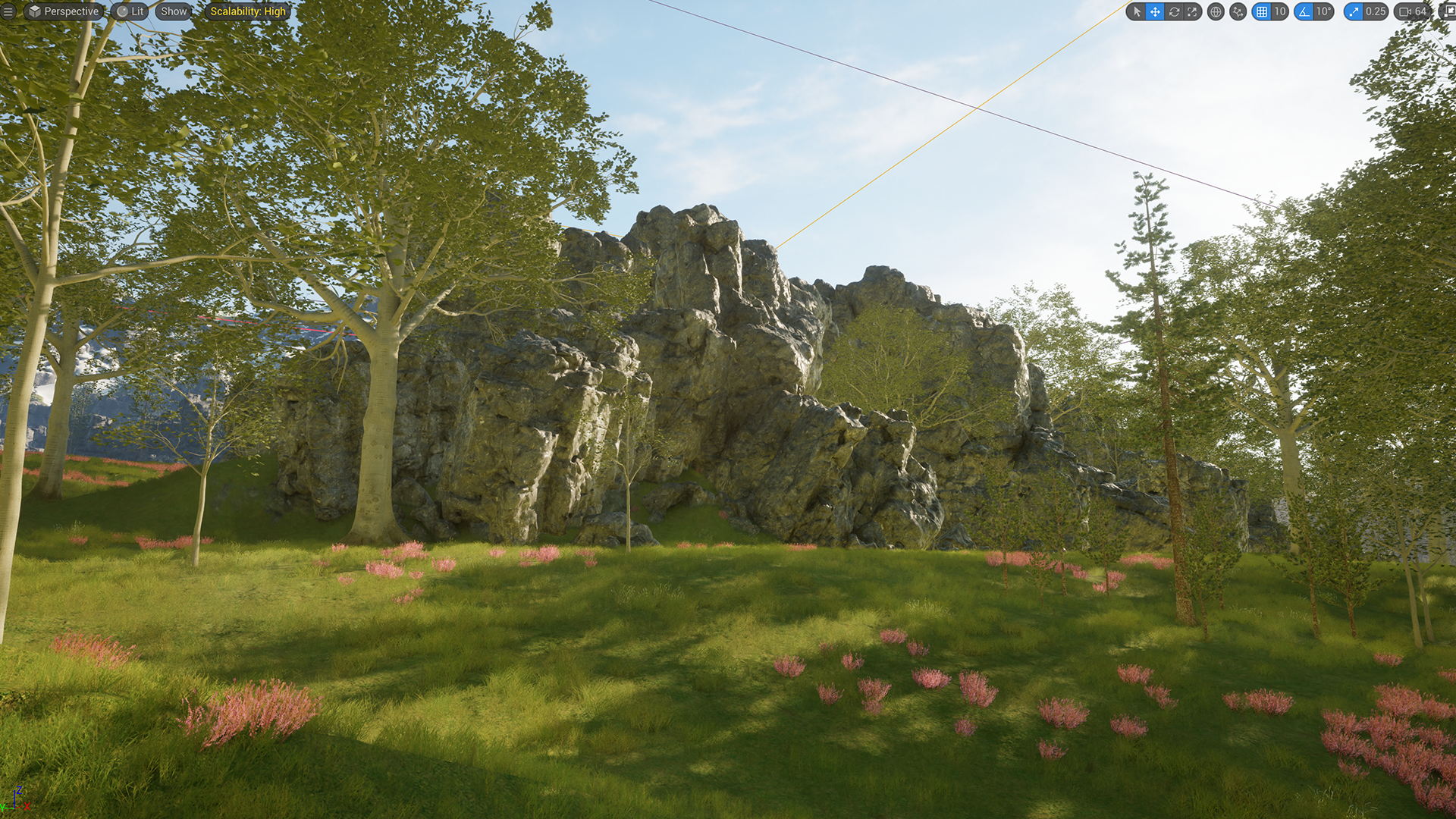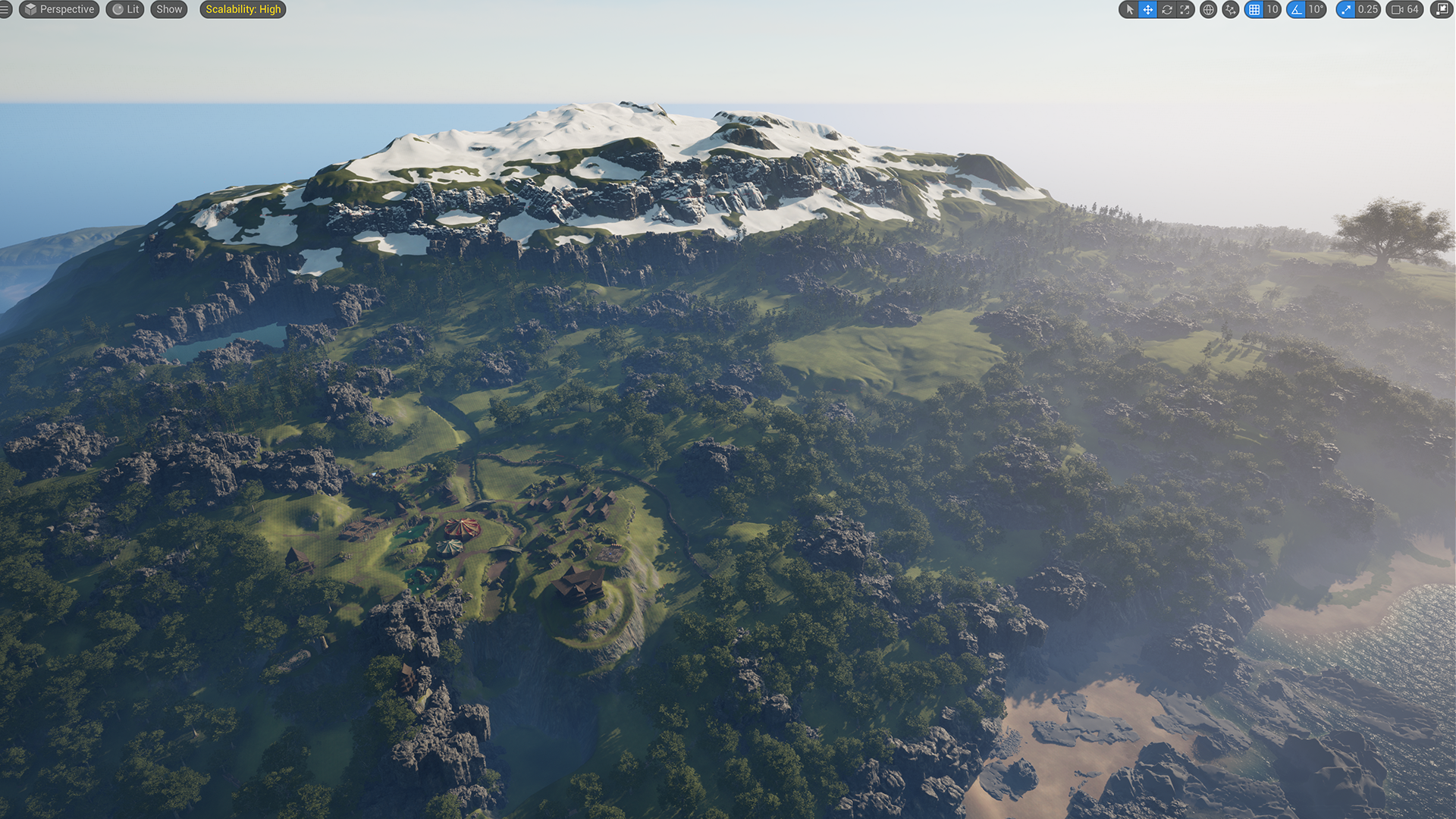 This week, the Environment team made significant progress in optimising Erendorn’s open world by restructuring how large-scale assets are generated and managed. The Procedural Content Generation (PCG) world volume was divided into smaller, more manageable chunks and successfully integrated into the World Partition system, improving overall performance while providing greater control over view distances and hierarchical level of detail (HLOD) management. Tree density within the PCG system was increased to create richer, more natural-looking forests, while rock clusters were reworked using updated assets and improved generation logic to enhance environmental variety. Additional testing was carried out on higher-resolution Runtime Virtual Textures (RVTs) to refine terrain detail, and initial HLOD layers were created and arranged as part of ongoing efforts to optimise visual fidelity at distance. These updates mark an important step toward achieving a more efficient and visually immersive world for players to explore.